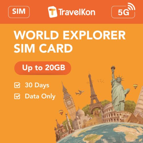 The World Explorer 5G SIM Card by TravelKon is a versatile global travel SIM solution offering extensive 5G coverage across numerous countries worldwide. This SIM card is designed to provide reliable, high-speed internet access for travelers needing mobile connectivity almost anywhere they go.